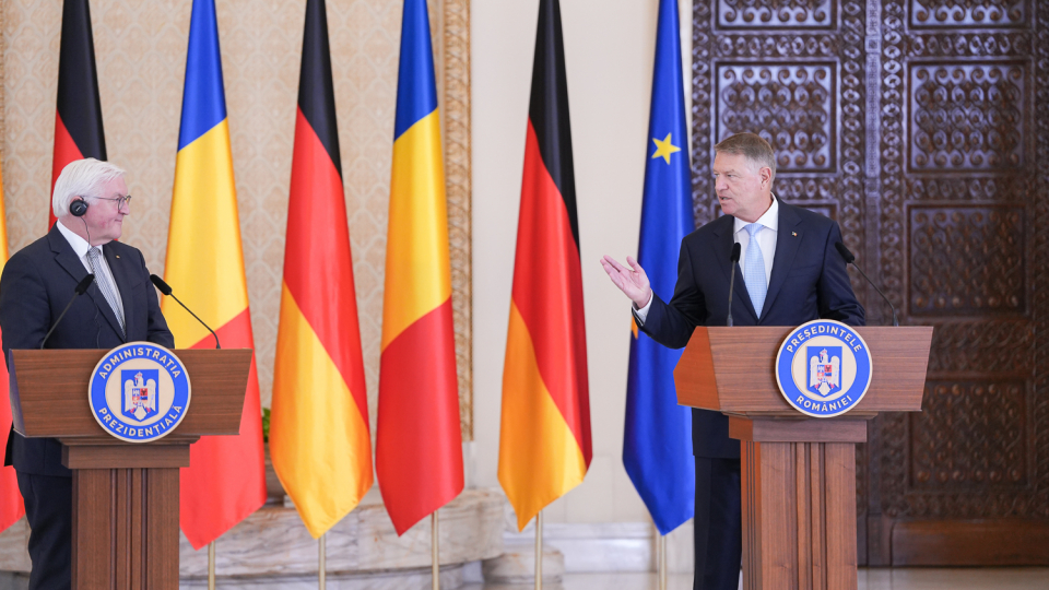 Președintele României, Klaus Iohannis, a susținut miercuri, 24 mai 2023, la Palatul Cotroceni, declarații de presă comune cu Președintele Republicii Federale Germania, Frank-Walter Steinmeier.