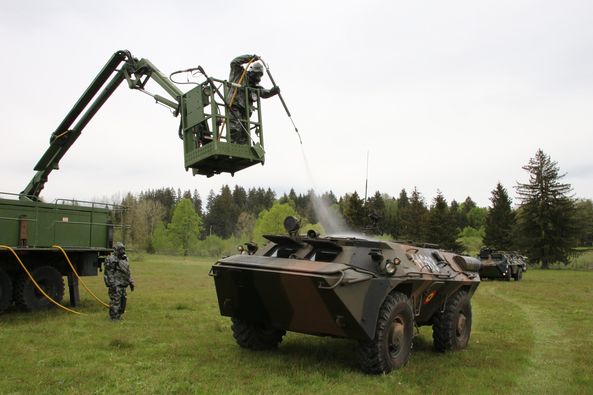 Militari francezi, specialiști în arma Apărare Chimică, Bacteriologică, Radiologică și Nucleară din cadrul Grupului de Luptă NATO cu Prezență Înaintată Eagle IV, împreună cu militari români de aceeași armă din cadrul Brigăzii 61 Vânători de Munte ,,General Virgil Bădulescu”, au parcurs o etapă de pregătire