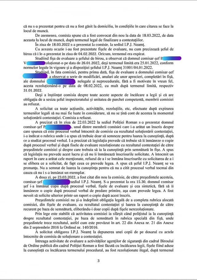 Se solicita cercetarea disciplinară a șefului Biroului Ordine Publică, inclusiv a membrilor comisiei care au în prezent calitatea de polițist