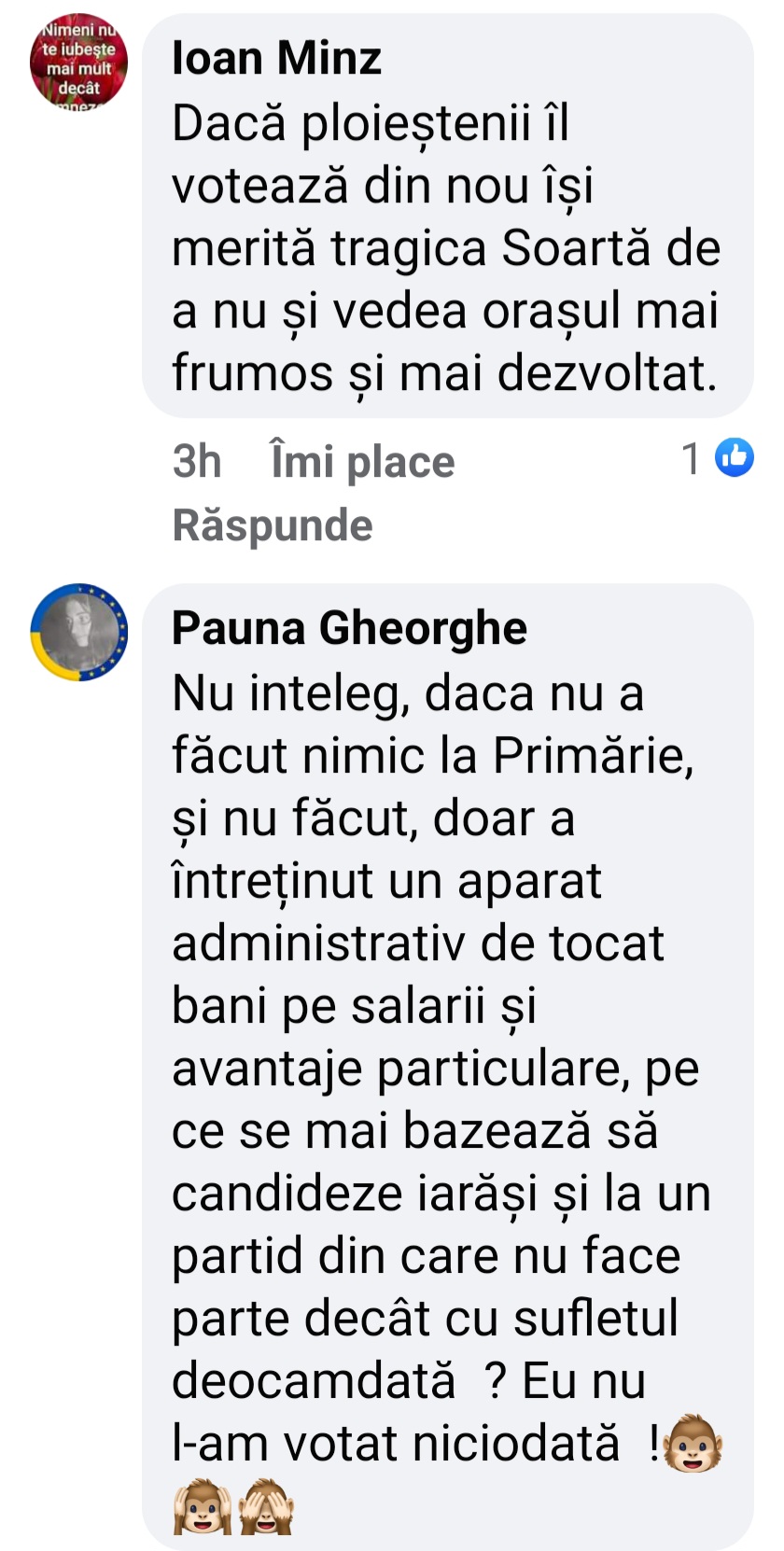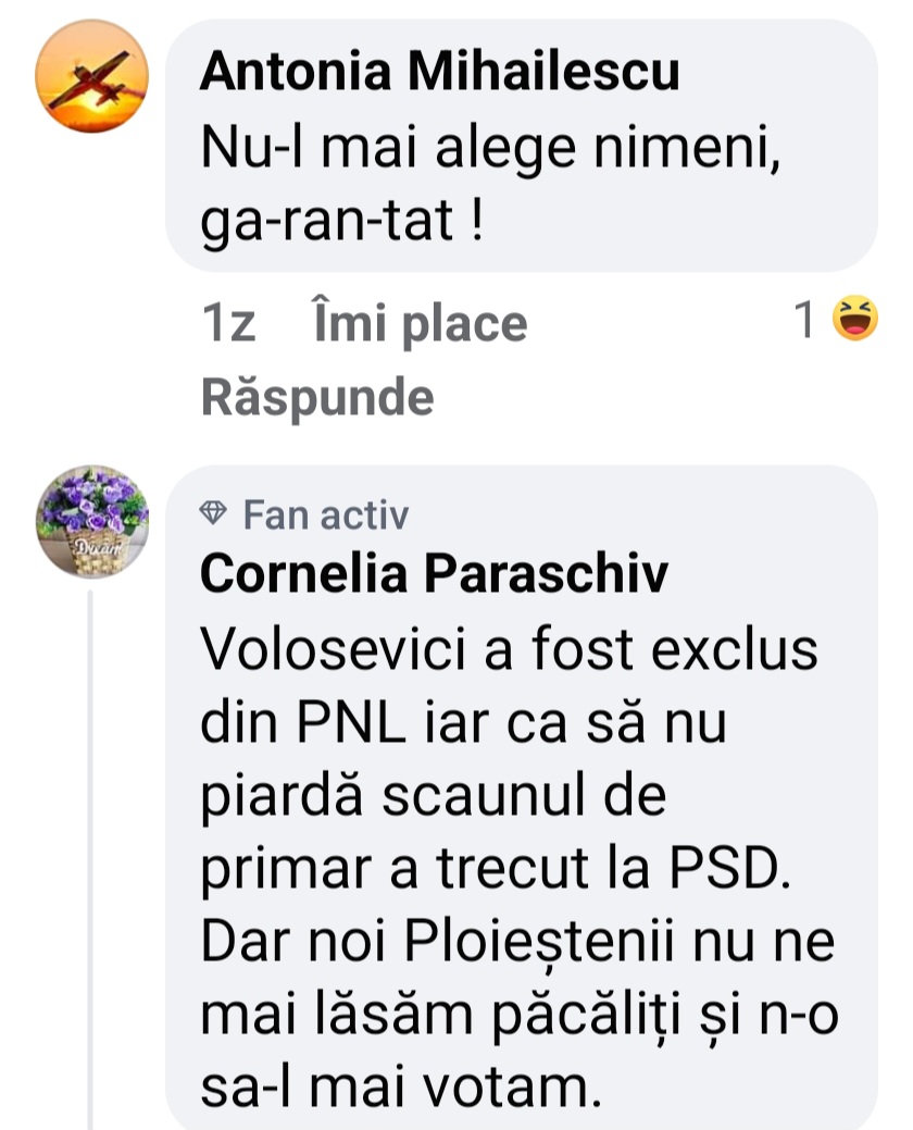 Etc,, etc, etc…. sunt sute si mii de astfel de comentarii. PSD-ul a reusit imposibilulul: sa se ingroape cu cei doi specialisti, la nivel local: Finul („Inca”) Primnarul suspndat al PNL-ului si Nasa acestuia, „profesionistul” desăvârșit al PSD,  Administratorul Public al Ploiestiului, Simona Albu! Vom reveni. (Cerasela N.).