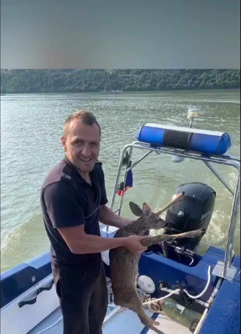 Căprioară salvată de la înec de polițiștii de frontieră cărășeni