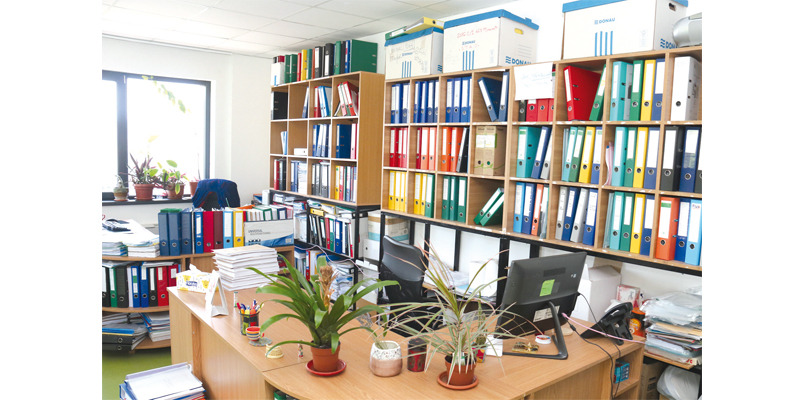 În secția care are responsabilitatea managementului investițiilor NSIP, există un birou care se ocupă doar de urmărirea lucrărilor de la Fetești. Pereți capitonați cu rafturi pline de dosare, multe documente pe birouri și lângă acestea, dar și depozitate în altă cameră.