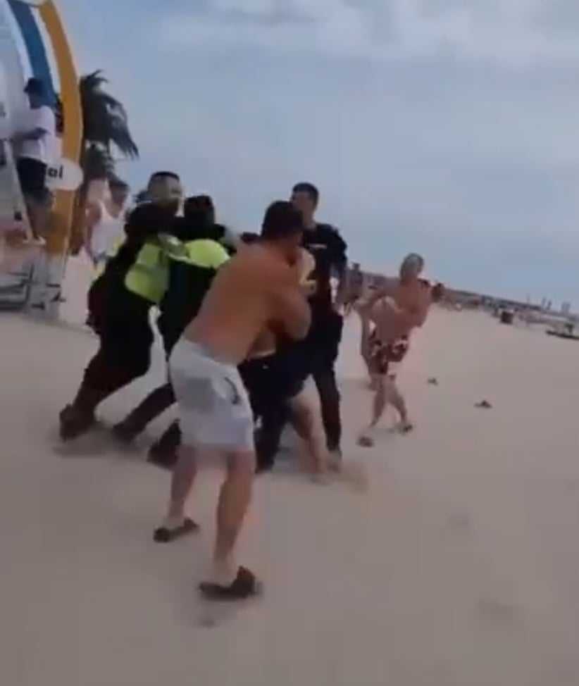 După ce si-au împărțit pumni și picioare între ei, pe plaja din Costinești, scandalagiii si-au îndreptat atenția către forțele de ordine, polițiști și jandarmi