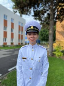 A ales facultatea cu predare în limbă engleză. S-a gândit că îi va fi mai ușor. Este prima academie militară care aduce o astfel de oportunitate, era primul an de funcționare al acestui program. Și sunt impresionată. Mi-am dat seama că se apropie foarte mult de studiul în străinătate ca parte practică, avem foarte multe laboratoare, facem multe lucruri practice. Nu e doar teorie. Ni se predă și aici, dar totul are aplicație. Ba chiar și la matematică ne spune – asta veți folosi acolo, asta veți folosi acolo.