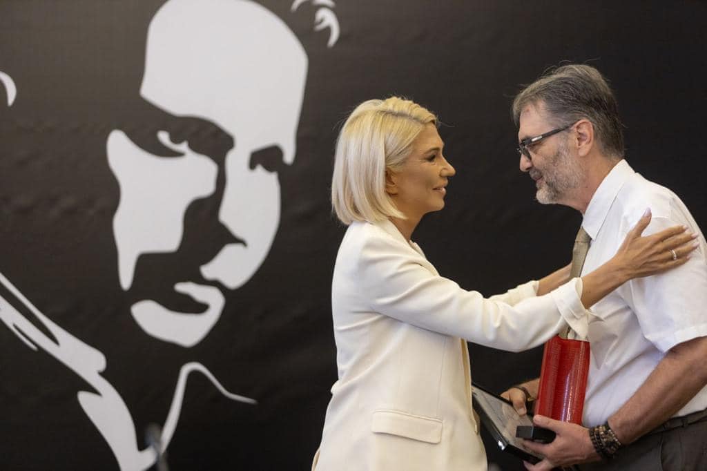 Ministra Culturii, Raluca Turcan, i-a oferit lui Mihai Constantinescu, directorul executiv al Festivalului și Concursului Internațional ”George Enescu”, Distincția de Excelență și Trofeul Ministerului Culturii