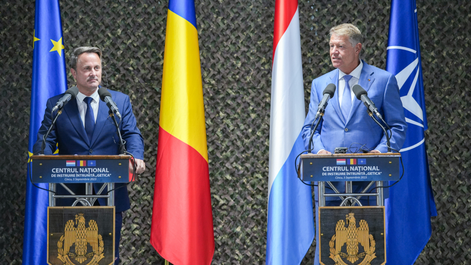 Președintele României, Klaus Iohannis, a susținut marți, 5 septembrie 2023, la Cincu, județul Brașov, declarații de presă comune cu Prim-ministrul Marelui Ducat al Luxemburgului, Xavier Bettel, în cadrul vizitei la Centrul Național de Instruire Întrunită „Getica”
