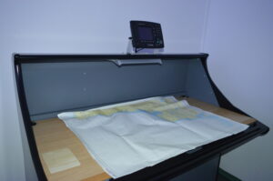 Din cadrul simulatorului nu lipsesc nici hărțile de hârtie, unde, cu echer și compas, marinarii determină punctul navei. În cei peste 20 de ani ca marinar, Eugen Frangeti s-a lovit de tot felul de situații, iar harta de hârtie poate fi salvarea.