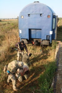 Un alt element foarte interesant la acest exercițiu este modul de acțiune în cazul producerii unui eveniment cu victime multiple. Este un eveniment pe care noi îl denumim MASCAL, un acronim de la mass-casualty. Vom simula o explozie, iar aproximativ 15 persoane vor fi vătămate. Pentru soluționarea incidentului au un plan de cooperare foarte bine stabilit atât cu partenerul american din Naval Support Facility Deveselu, cât și cu forțe din cadrul Inspectoratului pentru Situații de Urgență Olt, dar și cu Serviciul de Ambulanță Județean Olt. În plus, încercăm să executăm și o evacuare medicală aeriană cu sprijinul colegilor din Baza 90 Transport Aerian.