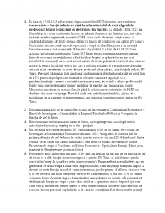 Cum definește Poliția noțiunea de „comportament dezadaptativ” În 2018, Sindicatul Europol atrăgea atenția că șefii din Poliție ar putea abuza de ștampila de „comportament dezadaptativ”. „Vom asista la o serie de abuzuri grosolane din partea șefilor, despre care avem mari îndoieli că înțeleg ce înseamnă «comportament dezadaptativ»”, se arăta pe pagina sindicatului. Poliția Română definește noțiunea drept un „comportament care prezintă un pericol pentru sine sau pentru alte persoane şi/sau care afectează în mod semnificativ randamentul în muncă şi/sau calitatea relaţiilor interumane”. „Am aflat că sunt un pericol pentru mine, că sunt un pericol pentru restul oamenilor, că afectez relațiile de muncă și relațiile interumane. Or, și colegii subsemnatului din dispecerat i-au urat d-nei subcomisar de poliție Dragomir Florina tradiționalul «La mulți ani!», dar nu au fost acuzați de «comportament dezadaptativ»”. Cezar Merticariu: Serie de evaluări psihologice El susține că nu i s-au comunicat problemele observate și nici nu s-au identificat cauzele declanșatoare. Apoi, a început seria evaluărilor psihologice. Prima, pe 15 martie, o evaluare psihologică în situații speciale, „în condițiile în care am susținut evaluarea psihologică periodică, în data de 22.11.2022”. El susține că s-a prezentat la întâlnirea cu psihologul, care i-a transmis verbal că nu se pune problema de comportament dezadaptativ. Și a semnalat ce s-a întâmplat în cazul său către superiorii din minister. Însă, „în scop de răzbunare”, șeful IPJ Timiș „a solicitat să fiu evaluat psihologic clinic suplimentar de către Centrul de Psihosociologie al MAI”. Acesta a solicitat, în scris, rezultatele evaluării din martie. Cum ele nu i-au fost înaintate, nu s-a prezentat și la București. Apoi a fost suspendat din funcție și retrogradat la Poliția Animalelor. „Mi-a fost încălcat dreptul la apărare” Al doilea polițist care a dat în judecată IPJ Timiș este Ovidiu Răchită. Spre deosebire de Merticariu, el a fost doar bănuit că a „scurs” informații despre plimbările cu mașina de serviciu făcute de Petecel. În fapt, el a fost bănuit că a făcut pozele cu mașina parcată la vila de lângă lacul Surduc. Și asta pentru că „în anul 2022 eu am fost programat să desfășor serviciu în zona lacului Surduc din județul Timiș”. Concret, Răchită povestește că „în data de 17.08.2023 a fost emisă dispoziția șefului IPJ Timiș prin care s-a dispus trecerea (n.r. mea) într-o funcţie inferioară până la cel mult nivelul de bază al gradului profesional deţinut, echivalent cu destituirea din funcție”. Ofițerul a contestat în instanță măsura și spune că nici până în ziua de azi nu știe de ce este acuzat.