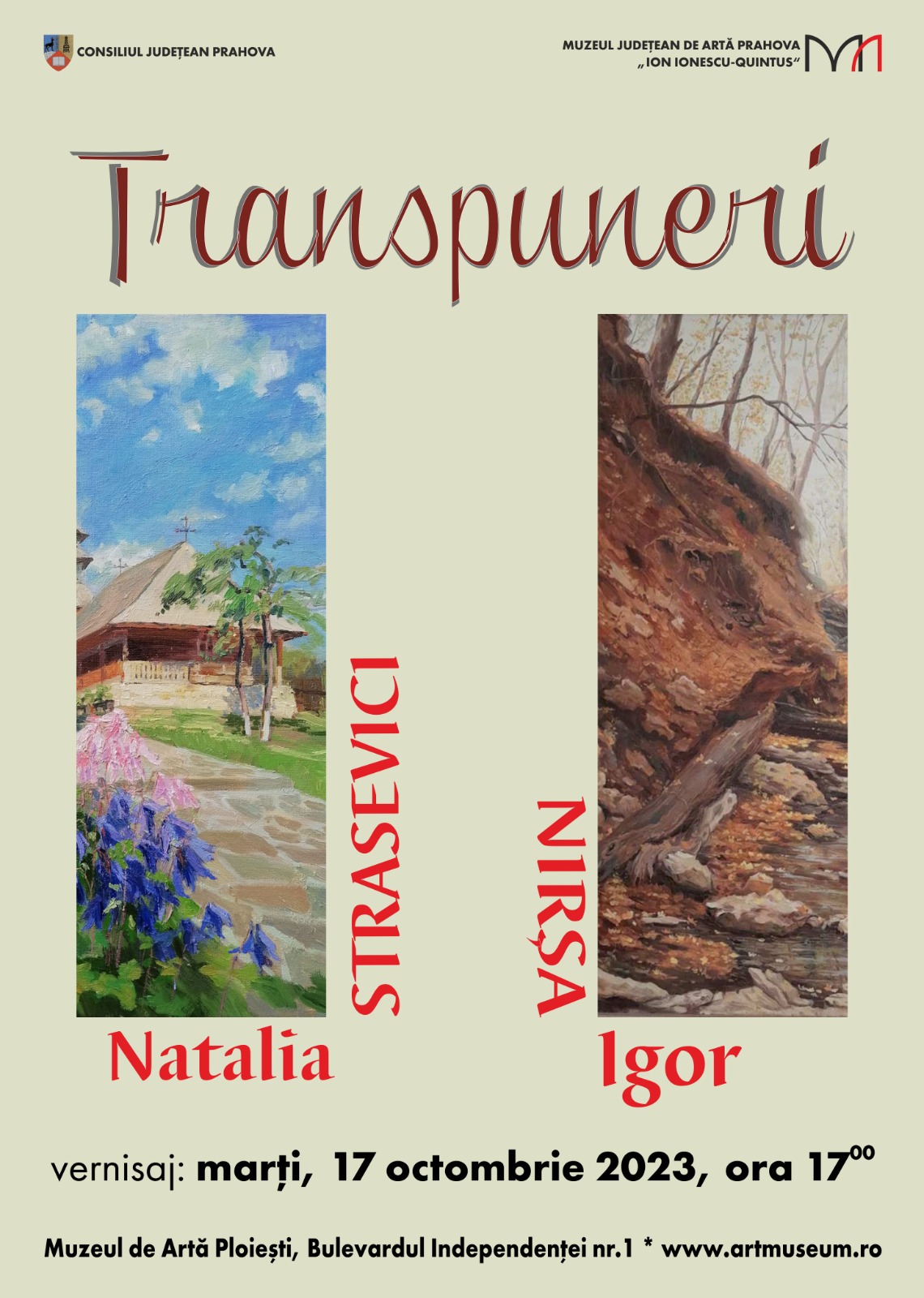 Marți,17 octombrie 2023, ora 17:00, Muzeul Județean de Artă Prahova „Ion Ionescu-Quintus” din Ploiești își deschide porțile pentru „Transpuneri”, o expoziție inedită care scoate în evidență talentul artiștilor contemporani Natalia Strasevici și Igor Nirșa