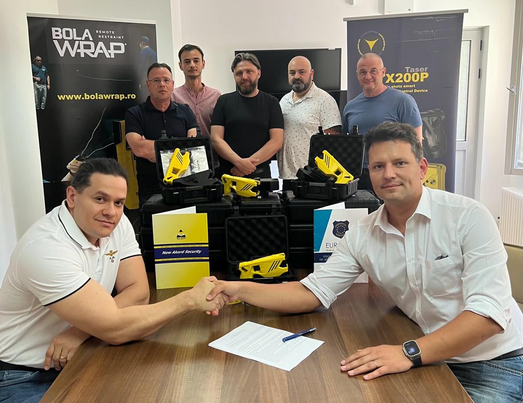 Acest demers a fost posibil ca urmare a parteneriatului încheiat între Sindicatul Polițiștilor Europeni EUROPOL și compania New Akord Security, în urma căruia, primele 20 de dispozitive cu electroșocuri au fost oferite spre folosință Direcției de Poliție a Municipiului București, urmând ca alte 20 de bucăți să fie furnizate în cel mai scurt timp.