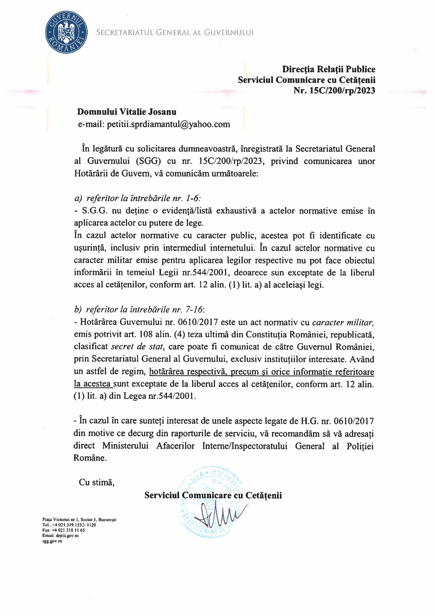 Dezvaluirea continutului HG 0610/2017 – reguli impersonale de salarizare a politistilor si militarilor – ar prejudicia siguranţa naţională şi apărarea ţării?