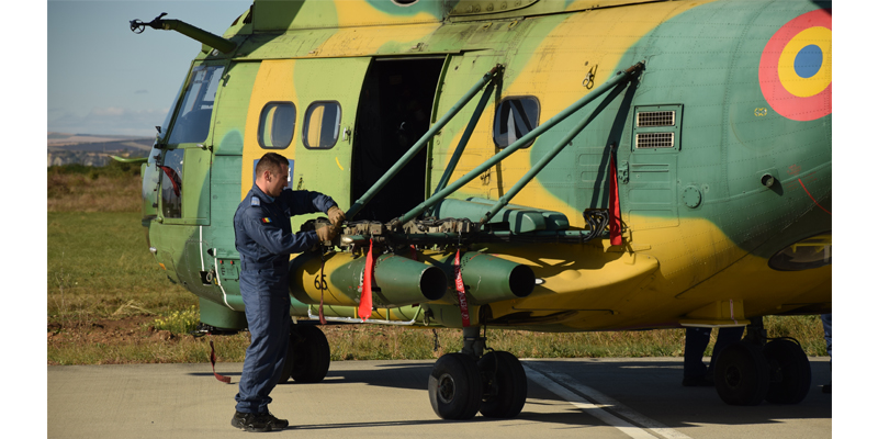 Am privit cum două elicoptere IAR-330 SOCAT au fost pregătite pentru trageri și apoi înarmate cu proiectile reactive nedirijate și muniție pentru tun. După care au decolat către poligonul Bogata, unde tinerii piloți au executat ședințe de trageri specifice.