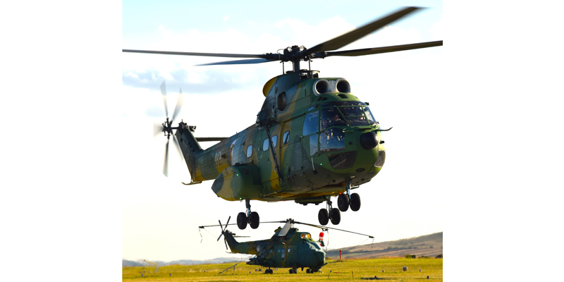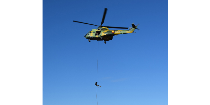 Un IAR-330 Puma specializat MEDEVAC a asigurat sprijinul pentru antrenarea salvatorilor și paramedicilor în trolieri și coborâre în rapel. Acționau cu dibăcie și precizie, mai ales că vântul avea grijă să mai deranjeze cu rafale neanunțate.