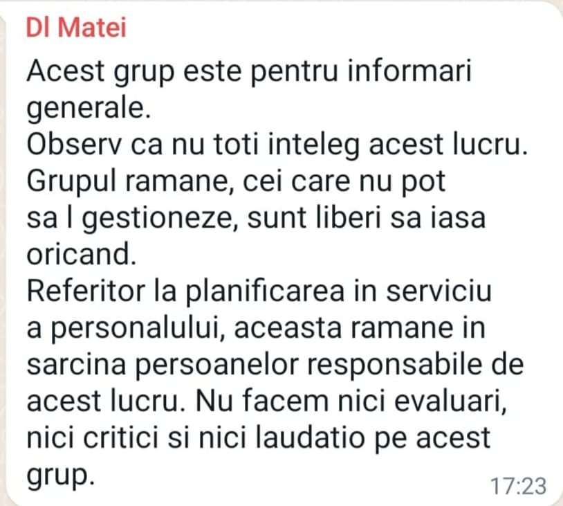Văzând că pierde controlul asupra unității directorul Valentin Matei încearcă să blocheze exprimarea angajaților.