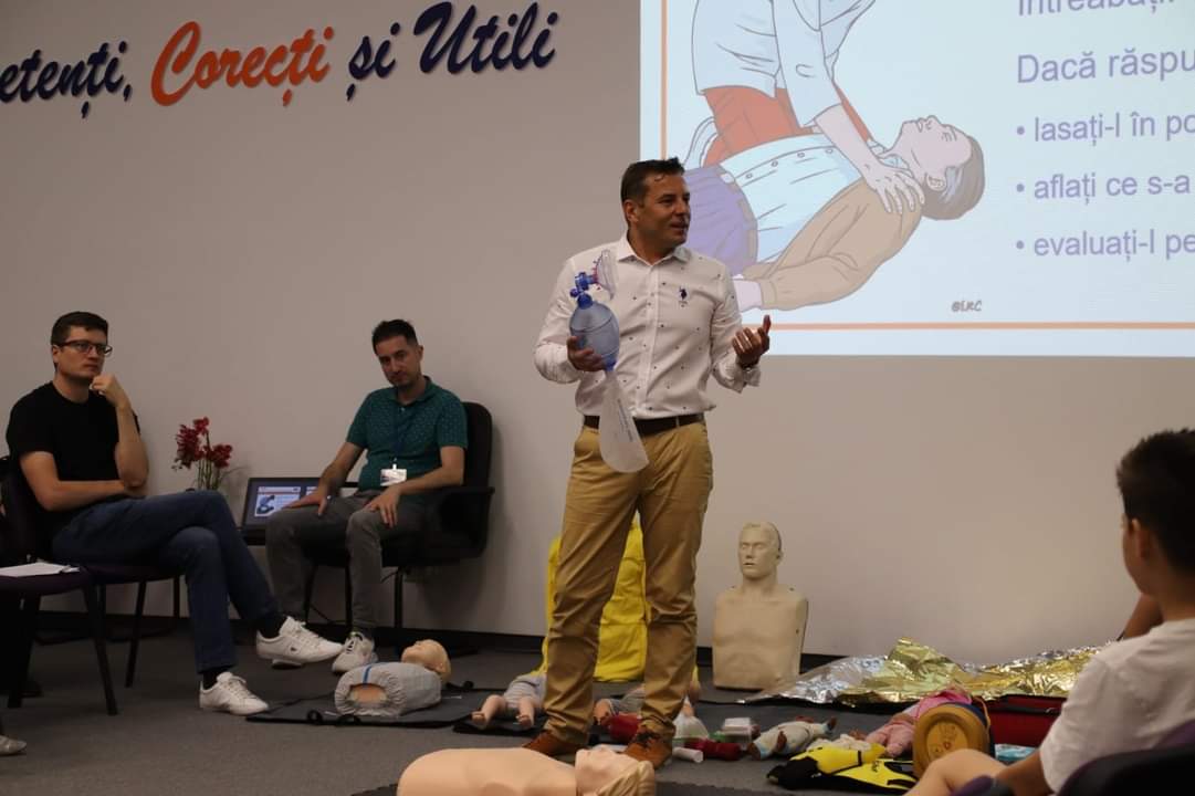 Printre temele abordate au fost: acordarea primului ajutor în în caz de: înec, incendiu, stop cardiorespirator, leziuni sau fracturi, hemoragii, sufocare etc.. Cursanții au primit informațiile teoretice necesare, dar au și exersat sub îndrumarea formatorului, putând să ofere primul ajutor în situații de urgență, până la sosirea echipajului de intervenție medicală.