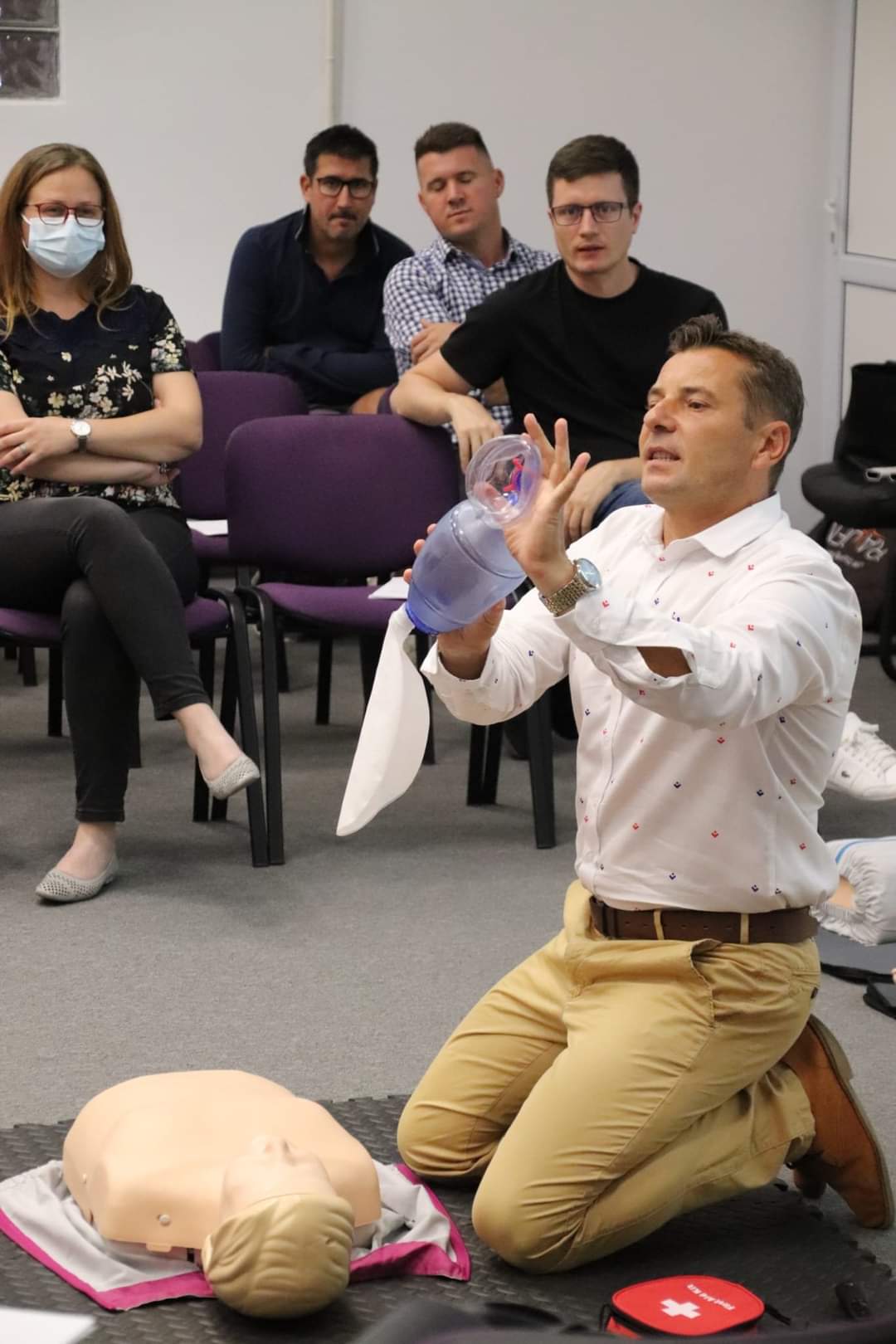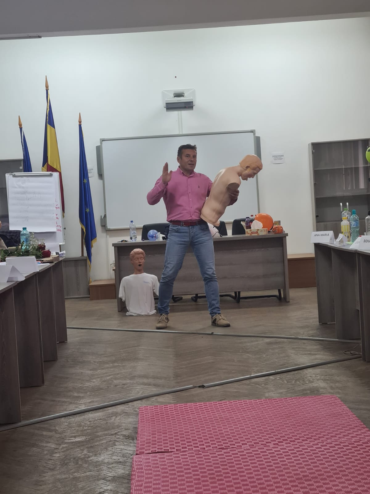 Printre temele abordate au fost: acordarea primului ajutor în în caz de: înec, incendiu, stop cardiorespirator, leziuni sau fracturi, hemoragii, sufocare etc.. Cursanții au primit informațiile teoretice necesare, dar au și exersat sub îndrumarea formatorului, putând să ofere primul ajutor în situații de urgență, până la sosirea echipajului de intervenție medicală.