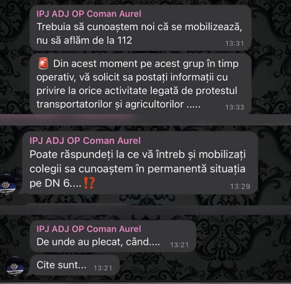 „Ne-au pus politicienii să fugărim fermierii și transportatorii/Să le blocăm accesul pe drumurile publice”