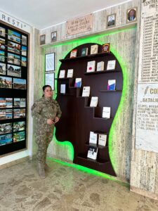 A ales B 96, pentru că locuieşte aproape de unitate. Trebuia să mă gândesc la familie, să iau în calcul și că soțul meu este foarte mult timp plecat de acasă, avem un copil și atunci cineva trebuie să fie lângă el. Faptul că am urmat un profil uman în liceu, a făcut ca, în prezent, să mă ocup de bibliotecă, de sala de tradiții. De fiecare dată când avem invitaţi, vorbim de istoria batalionului şi a armei geniu, de la înființare până în prezent.
