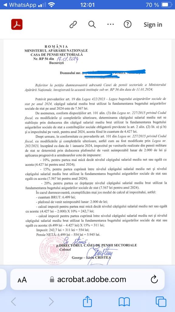 Impozitarea progresiva s-a aplicat tuturor pensionarilor militari, insa eroarea de aplicare se observa efectiv doar in buzunarul/contul bancar al celor iesiti inainte de 15 septembrie 2017