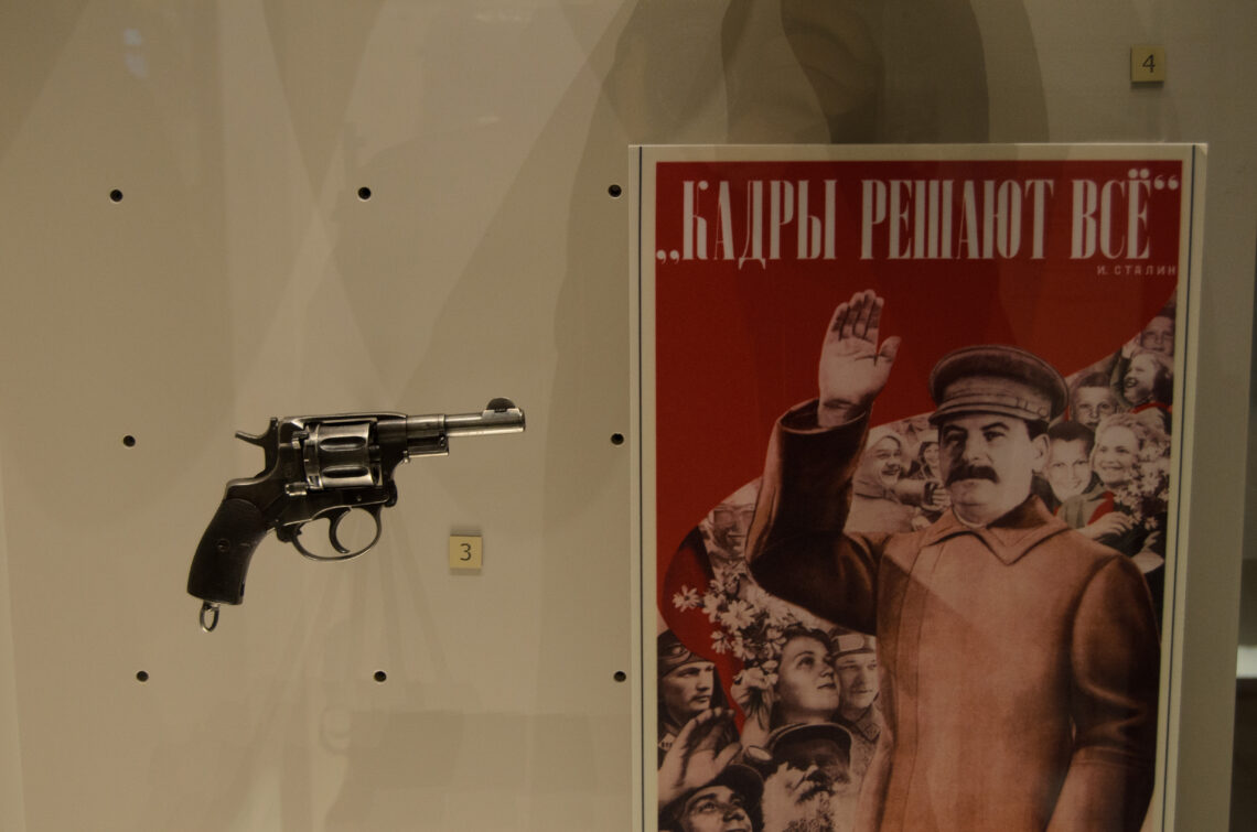 Detaliu din secțiunea dedicată dictatorilor, din expoziția despre Al Doilea Război Mondial.