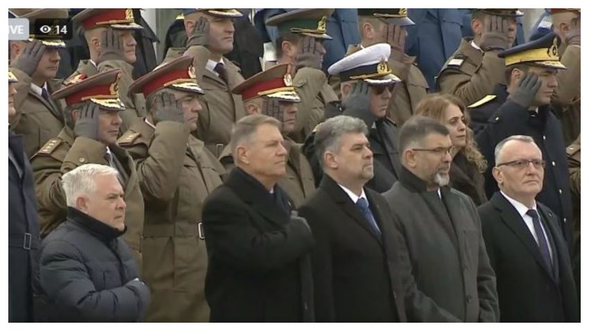 Klaus Iohannis și Marcel Ciolacu participă la ceremonia organizată cu prilejul Zilei Unirii Principatelor Române la Monumentul „Mormântul Ostașului Necunoscut”din Parcul Carol I