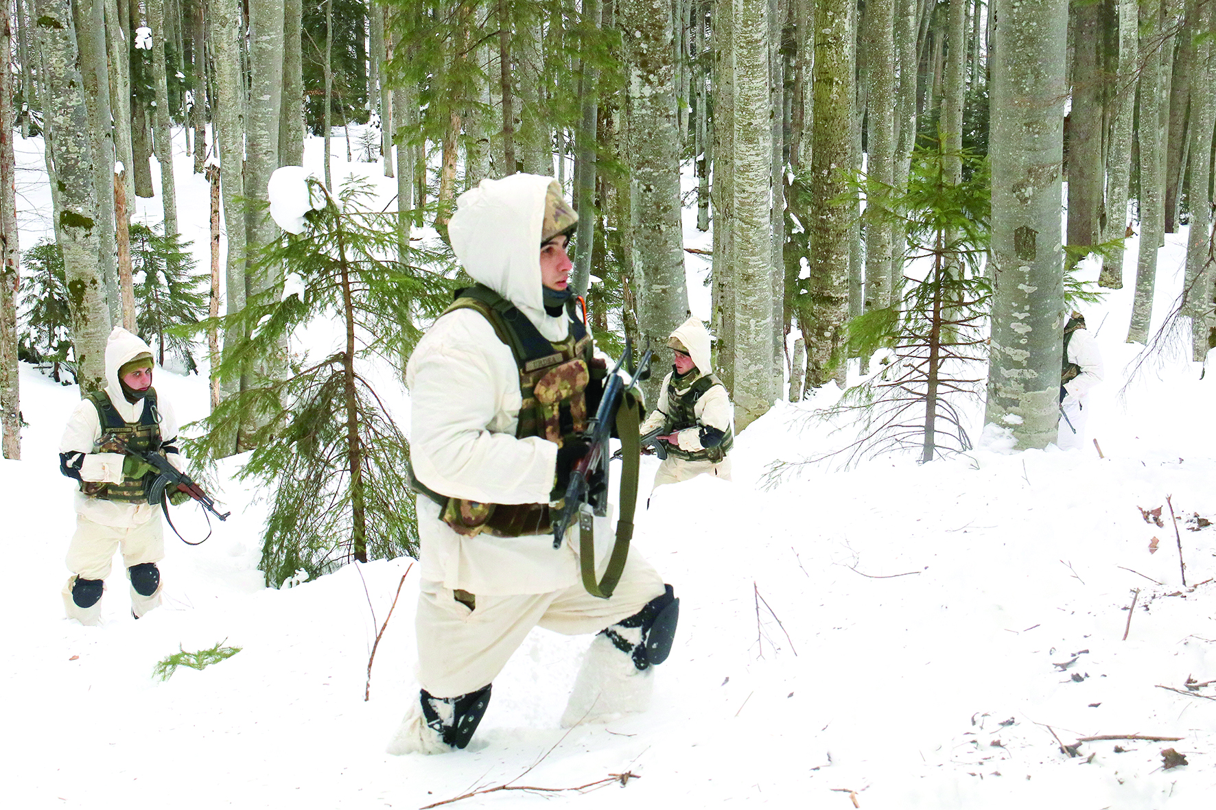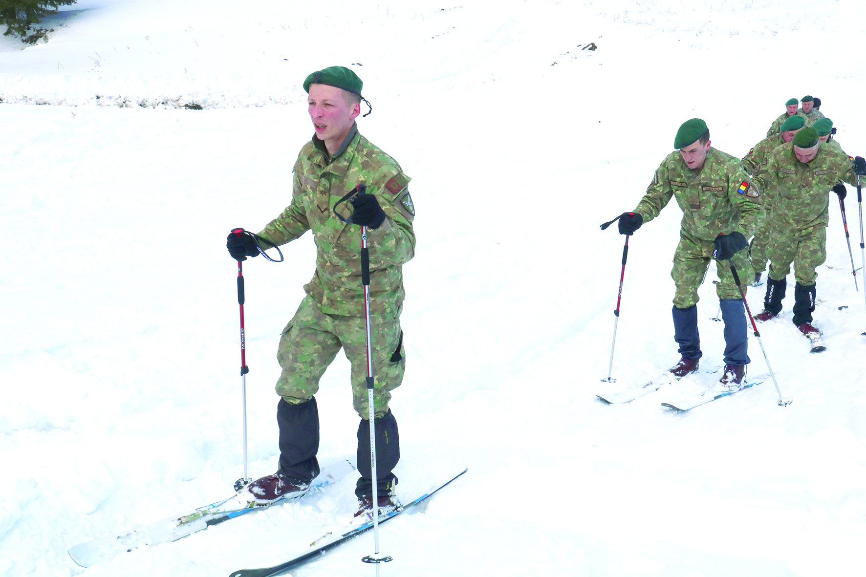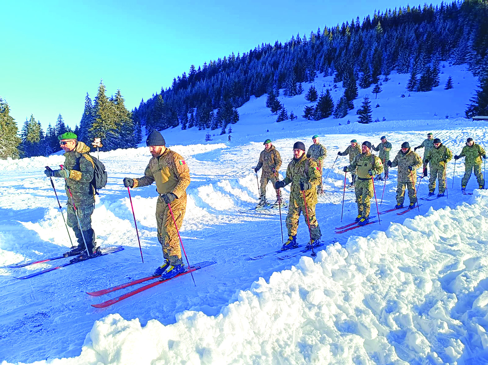 Pregătiți pentru o nouă sesiune de instrucție pe schiuri, militarii Batalionului 30 Vânători de Munte Dragoslavele din Câmpulung au pus în practică tot ce au dobândit în cunoștințe de la începutul taberei la munte-iarna. Avem mulți militari noi în această tabără, pentru care e prima ieșire în teren. Sunt motivați, chiar dacă unii abia acum învață să schieze. Avem și militari cu experiență, care îi ajută pe cei nou-veniți, îmi explică locotenentul Dragoș Necula, comandant companie în cadrul Batalionului 30 VM.