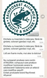 Factual.ro scrie că logo-ul broscuței de pe etichetele mai multor produse alimentare aparține asociației nonprofit Rainforest Alliance, ai cărei membri încearcă să reducă impactul pe care îl are societatea de consum asupra ecosistemului și muncitorilor din domeniu. Programul de certificare, prin care producătorii pot obține ștampila Rainforest Alliance, este unul complex și riguros: membrii asociației, care are filiale în 70 de țări, trebuie să se convingă că procesul prin care alimentul este obținut respectă regulile unei economii cu cât mai puține emisii de carbon, fără pesticide, dar și că angajații sunt respectați și plătiți corespunzător. Simbolul e folosit de peste 35 de ani și sugerează că produsul e obținut în mod sustenabil pentru mediu și respectând demnitatea umană.