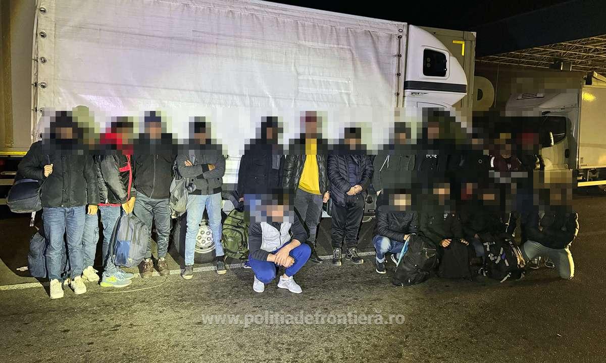 În baza profilului de risc s-a procedat la efectuarea unui control amănunțit al mijlocului de transport în urma căruia polițiștii de frontieră au descoperit, în compartimentul destinat transportului de marfă, șaptesprezece cetățeni străini.