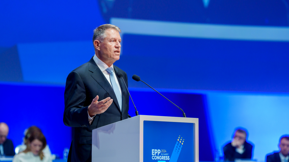Președintele României, Klaus Iohannis, a susținut joi, 7 martie 2024, la Romexpo, un discurs în cadrul Congresului Partidului Popular European.