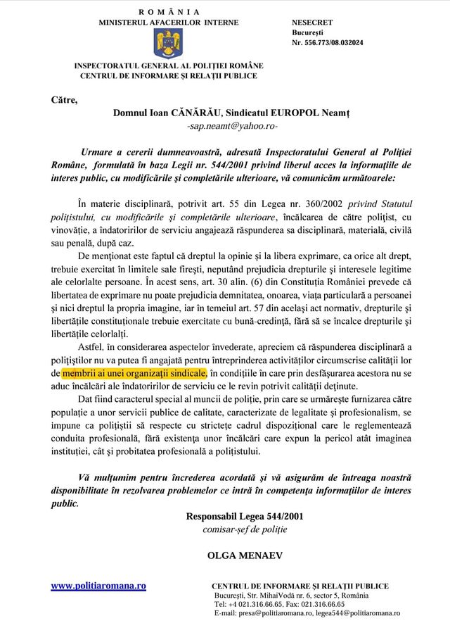Sindicatul subliniază că polițiștii nu cer privilegii, ci doar respectul și condițiile minime pentru a-și putea face datoria față de cetățeni și față de România. (Cerasela N.).