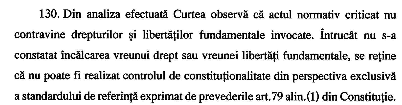 Rolul CCR nu este rezumat doar la apararea drepturilor fundamentale, ci priveste apararea fiecarui articol din constitutie!/Motivare halucinanta