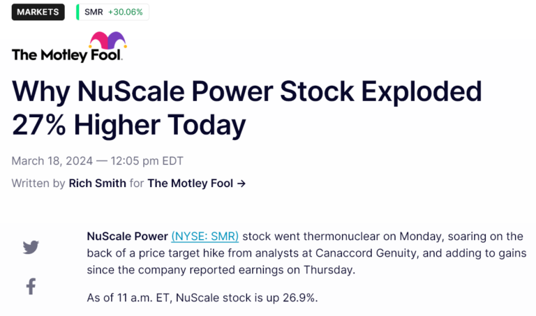 Ce s-a întîmplat azi, care ar putea explica de ce niște acțiuni aflate în cădere la acest început de an, au explodat ”termonuclear”, după cum punctează siteul NASDAQ, care amintește și că NuScale a încheiat anul trecut cu o pierdere de 180,1 milioane USD, ceea ce a fost mai rău decât se anticipase?