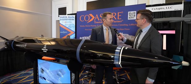 Un grafic redat de companie la standul CoAspire arată un F-35A al Forţelor Aeriene ale SUA care lansează şase rachete hipersonice în succesiune rapidă, atât din suporturi externe, cât şi interne.