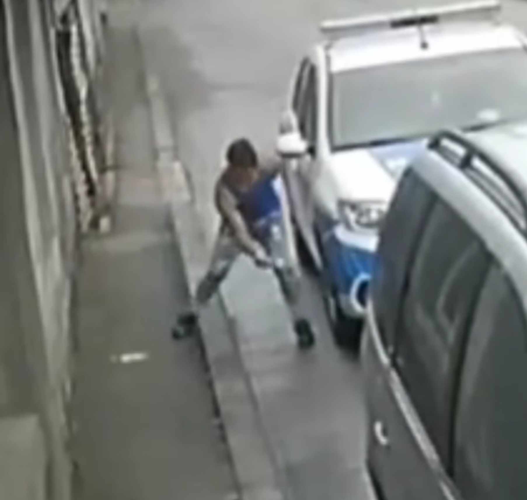 Un distins cetățean european cu drepturi și libertăți a tăiat anvelopa unei mașini de poliție.