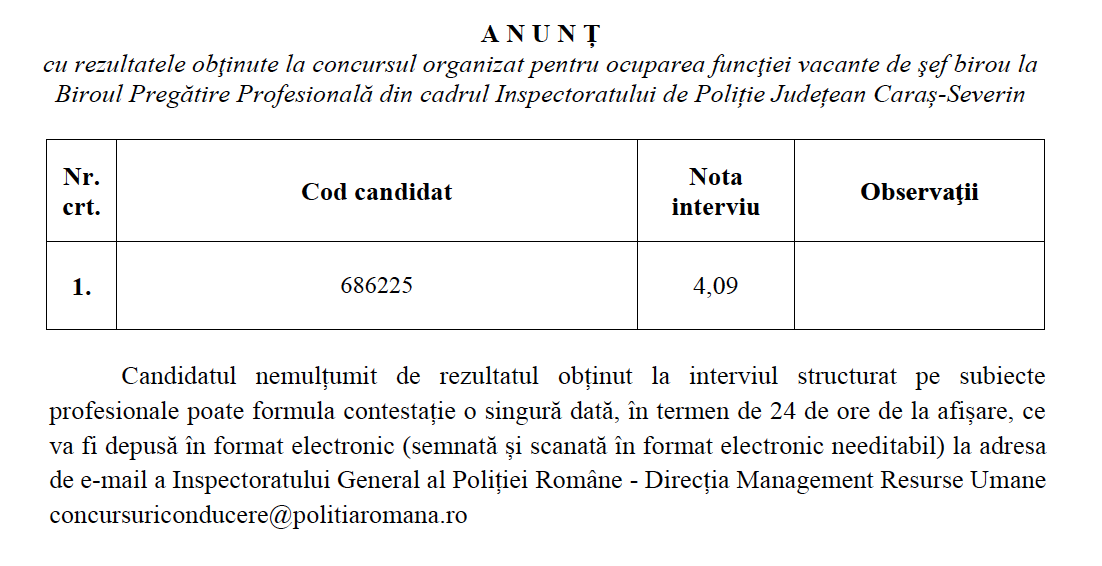 Iar pentru corecta informare, vă prezentăm parcursul cms. șef Mititelu Daniel, care a candidat singur pentru poziția de șef birou, și a ieșit pe locul 2, fiind notat cu 4, cu toate că tot el exercita funcția din 2021, sub diferite forme. Concursul a avut loc la nivelul IGPR iar ca urmare a temerilor enunțate de colegii din cadrul IPJ Caraș Severin, Sindicatul Europol a desemnat un reprezentant care să asiste, în calitate de observator, la concurs.