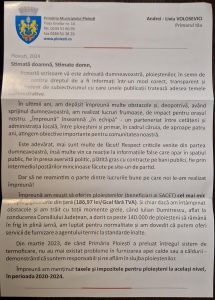 Intr-o actiune disperata acesta a transmis cetatenilor din urbea lui Caragiale o „Scrisoare” plina de minciuni, probabil pe banii primariei.