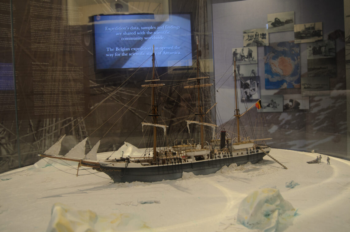 Machetă a navei „Belgica”, blocată în banchiză, la Muzeul Regal al Forțelor Armate și al Istoriei Militare.