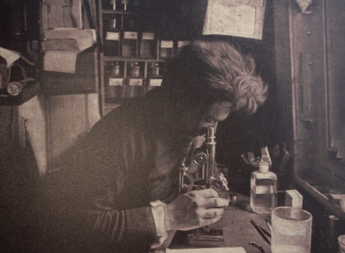 Emil Racoviță, în laboratorul său de la bordul navei „Belgica”.