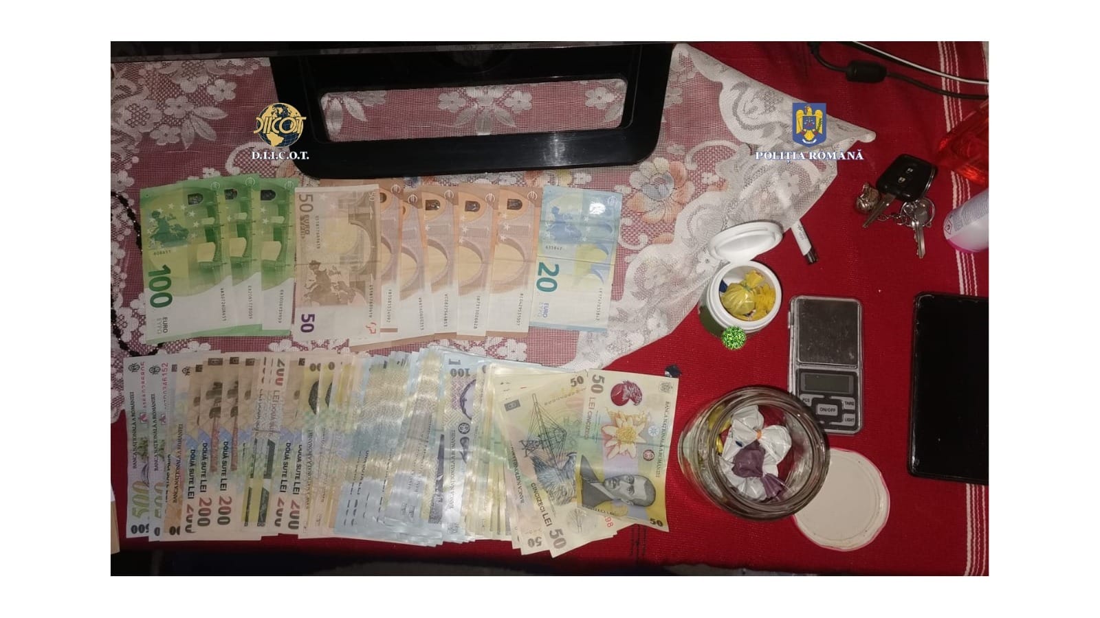 Au fost descoperite și ridicate cantități de droguri de risc și mare risc (canabis, ketamină, MDMA sub formă de pulbere și comprimate)