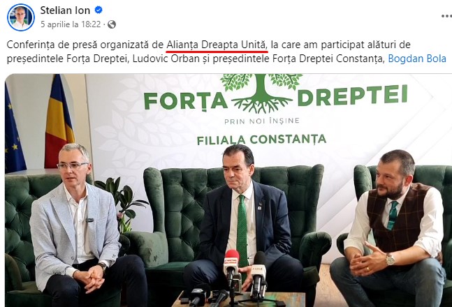 La ceea ce e prezentată ca fiind o reuniune a Alianței Dreapta Unită (USR+PMP+FD) sunt prezenți trei lideri: Stelian Ion (USR), Ludovic Orban (FD) și.. Bogdan Bola (FD)…