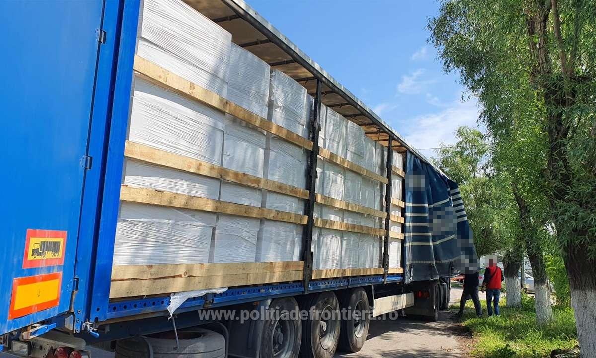 Poliţiştii de frontieră au descoperit, în remorca unui ansamblu rutier condus de un cetățean bulgar, 9.900.000 de ţigarete, fără marcaje fiscale.