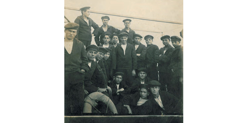 Elevi în practică la bordul navei „Basarabeanca”, Galați, 1924.