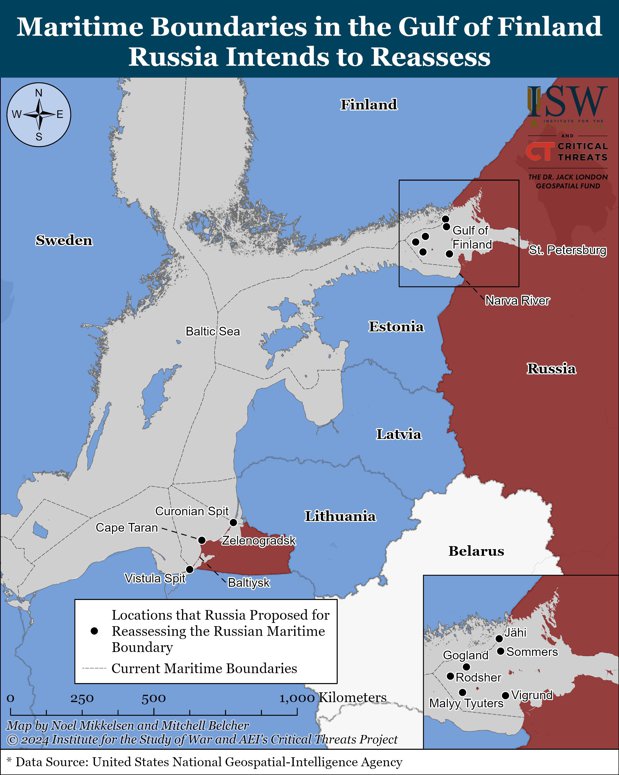 Ministerul rus al Apărării a propus pe 21 mai ca guvernul rus să reevalueze frontierele maritime ale Rusiei în Marea Baltică, astfel încât aceste frontiere „să corespundă situaţiei geografice moderne”. Astfel, Ministerul rus al Apărării a produs un document, pe care ulterior l-a retras de pe portalul juridic al guvernului rus, propunând ca Moscova să reevalueze frontierele maritime din 1985 din Golful Finlandei, deoarece aceste frontiere se bazau pe „hărţi de navigaţie nautice la scară mică” învechite, dezvoltate la mijlocul secolului 20.