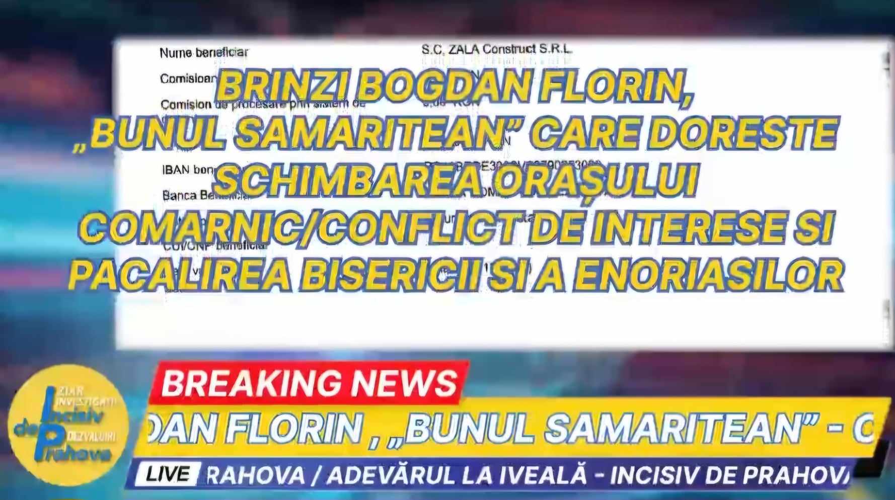 Brinzi Bogdan Florin este un „bun samaritean” care timp de trei ani de zile, in calitate de consilier local, s-a aflat succesiv in conflict de interese si a reusit, in interes personal, sa pacaleasca Parohia Comarnic si pe enoriasi.