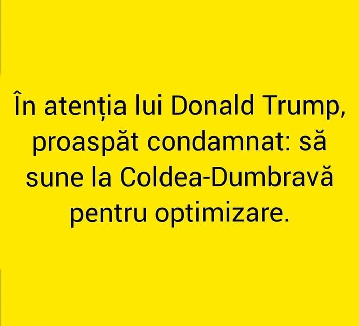 “In atentia lui Donald Trump, proaspat condamnat: sa sune la Coldea-Dumbrava pentru optimizare”