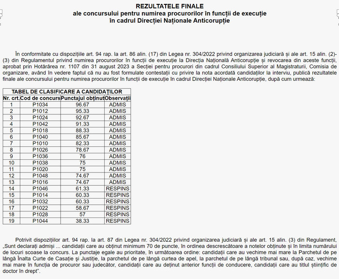 Cei 13 vor intra in paine dupa ce Sectia pentru procurori a CSM va valida, saptamana viitoare, rezultatele concursului. Trebuie stiut insa ca au existat mai multi doritori de a ajunge la DNA. Mai exact, in concurs s-au inscris 20 de procurori, unul dintrei ei – si anume Marius Iacob de la Parchetul Tribunalului Bucuresti (nu este vorba despre fostul adjunct DNA Marius Iacob) – retragandu-se din procedura. Dintre cei 19 care au sustinut interviul, doar 13 au fost admisi (vezi facsimil 1). Cine sunt cei sase nu se cunoaste deocamdata. Se stiu insa numele celor 20 de procurori care au participat la concurs (vezi facsimil 2). (Irinel I.).