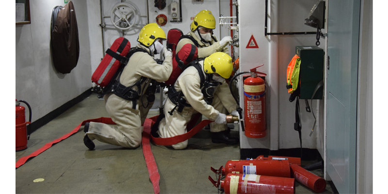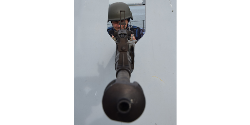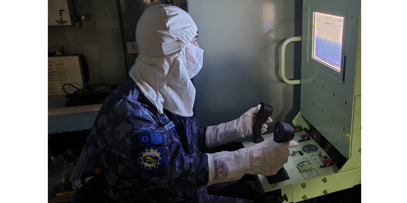 Mesajele criptate au fost transmise și recepționate pentru a menține securitatea comunicaţiilor. În alte compartimente ale navei, marinarii militari au exersat procedurile de urgență pentru astuparea unei posibile găuri de apă şi pentru neutralizarea unui incendiu.