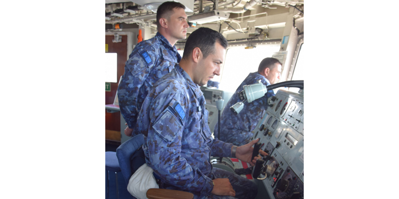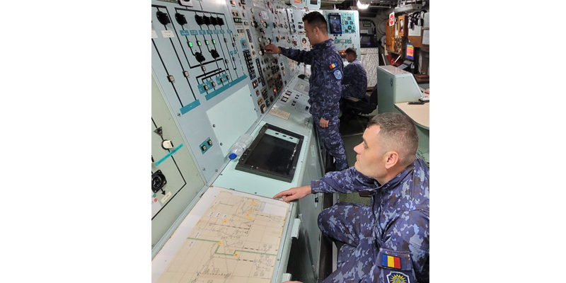 Fiecare membru al echipajului, aflat în cart sau în altă poziţie, are de învăţat, studiat, exersat. Am mers prin aproape toate compartimentele fregatei şi am văzut cum tinerii se împlică, ascultă de cei cu experienţă şi învaţă. Iar F-221 navigă.