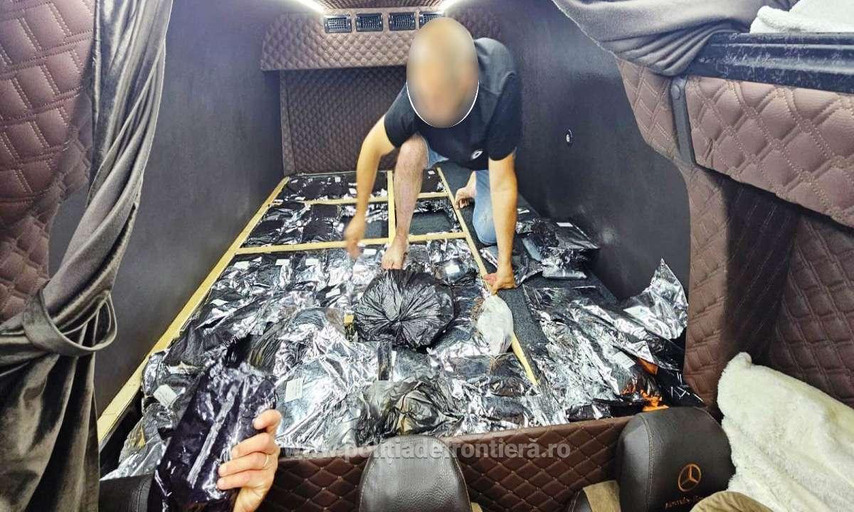 Datorită profilului de risc, s-a efectuat o inspecție minuțioasă a vehiculului, iar echipa mixtă de control, compusă din polițiști de frontieră și lucrători vamali, a descoperit 540 de pachete de tutun pentru narghilea, ascunse și nedeclarate în patul microbuzului, cu intenția de a fi sustrase de la controlul vamal.